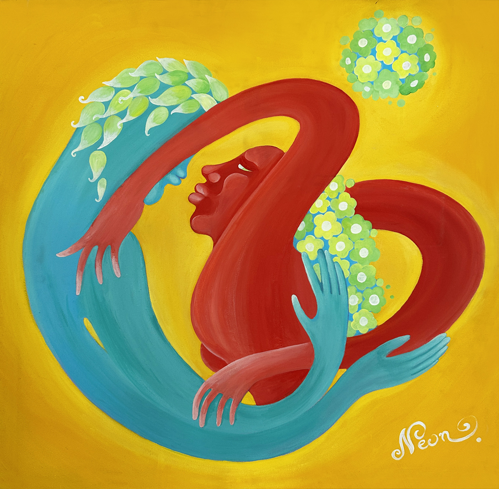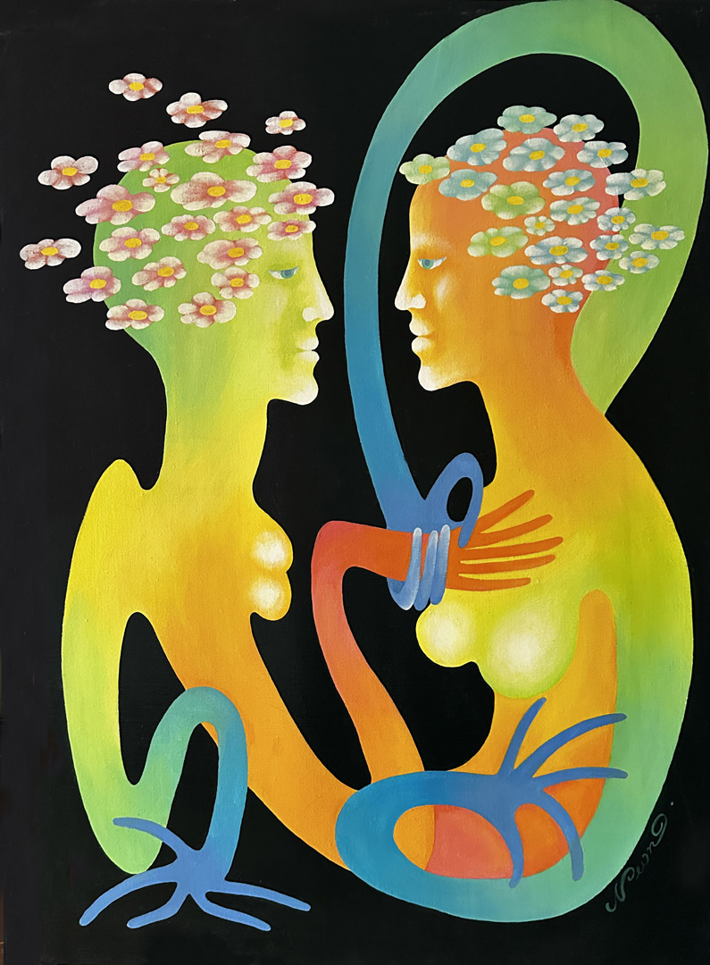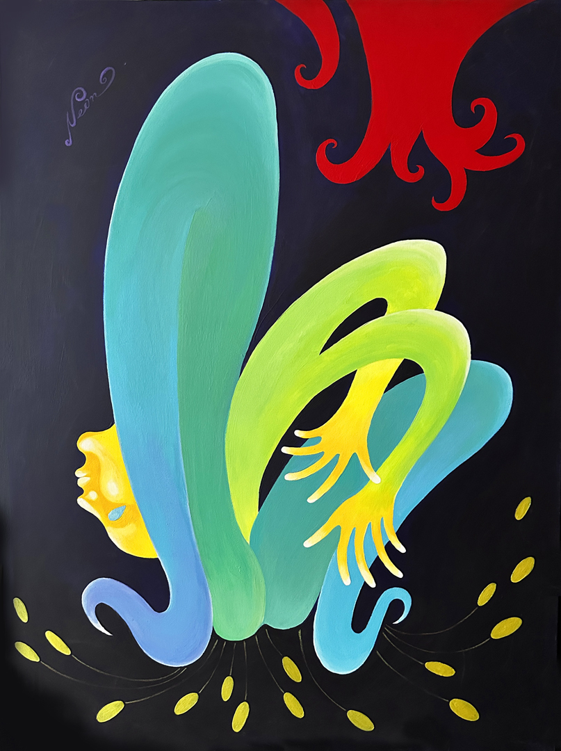 acrylics, pastels, mixed media